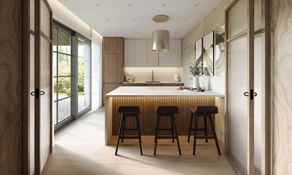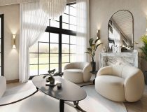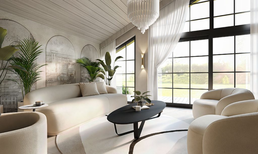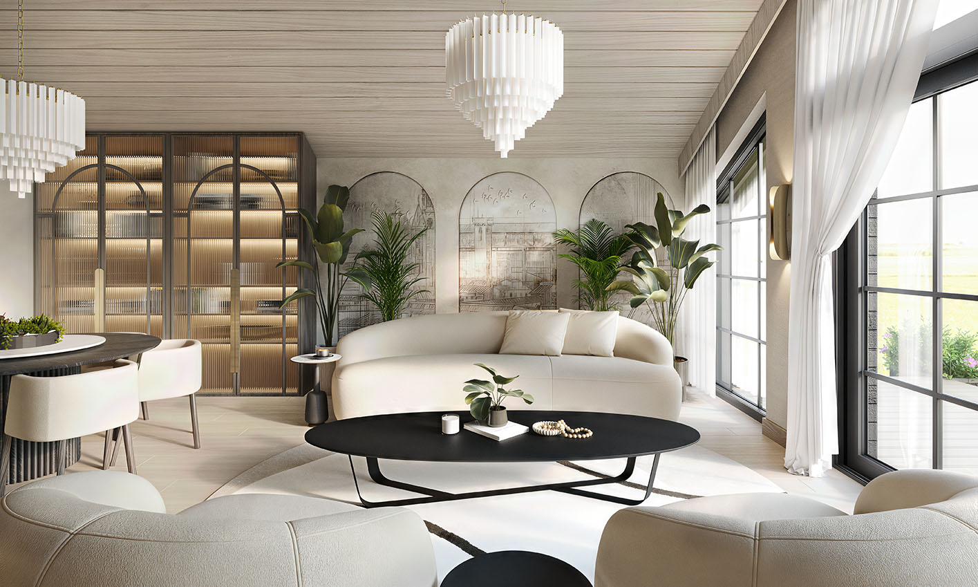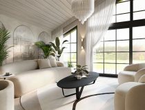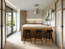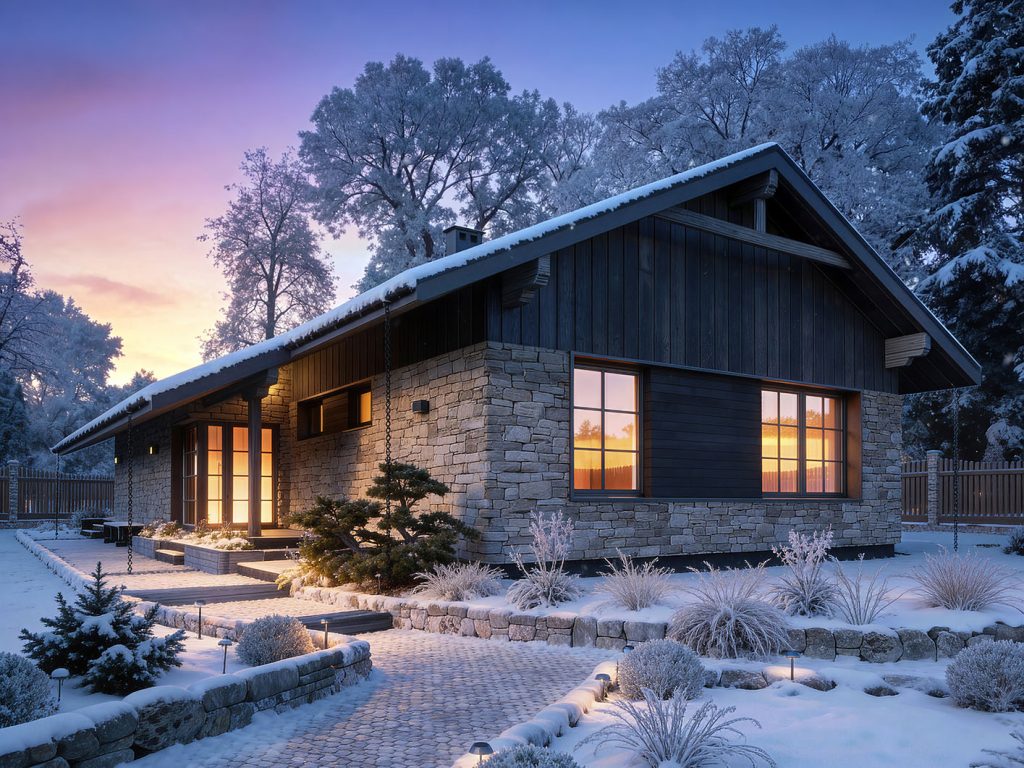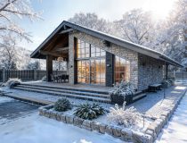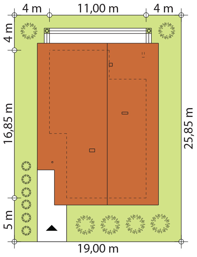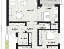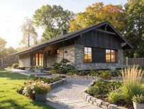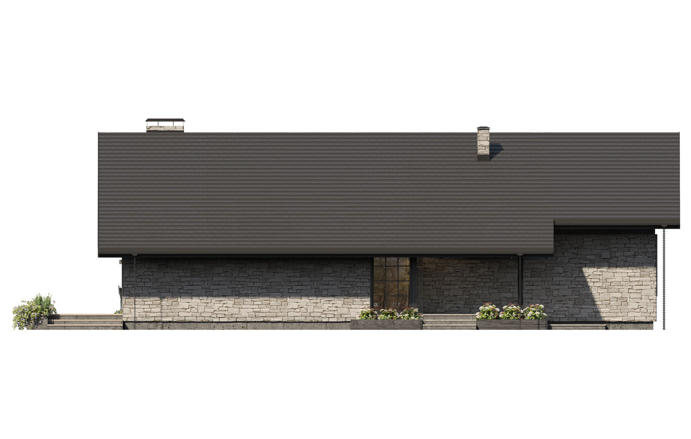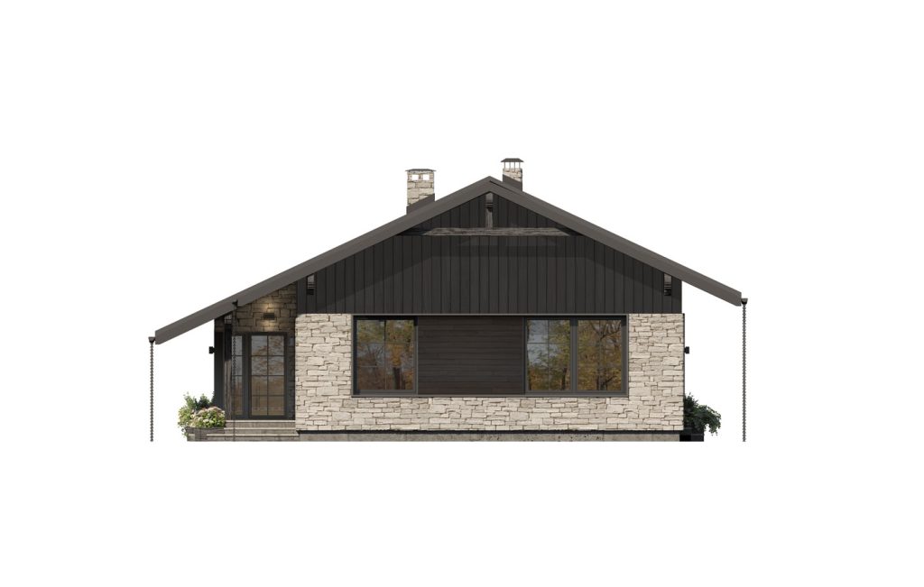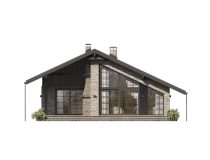 Aron to parterowy dom z trzema sypialniami na wąską (19m) działkę. Posiada trzy sypialnie i wysoką część dzienną z półotwartą kuchnią z możliwością pełnego zamknięcia. Posiada także praktyczne pomieszczenia pomocnicze jak spiżarnia, pralnia, kotłownia. Dom ten swym charakterem wpisywać się będzie zarówno w zabudowę podmiejską jak i typowo wiejską. Łączy w sobie tradycyjny dach spadzisty i naturalne materiały elewacji z nowoczesnymi przeszkleniami i otwarciem salonu po skosy dachu. Dużym atutem tego projektu jest zadaszony taras dostępny z kuchni i salonu z możliwością zrobienia tam paleniska/grilla. Aron to średniej wielkości, prosty i funkcjonalny dom o ponadczasowym wyglądzie.