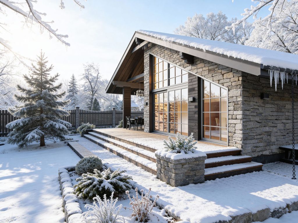 Ściany zewnętrzne: dwuwarstwowe, pustak ceramiczny, docieplony styropianem
