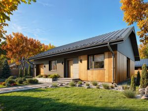 Parterowy dom jednorodzinny, łączący nowoczesny charakter elewacji z prostym, klasycznym układem pomieszczeń. Jest to bardzo wygodny , prosty i funkcjonalny dom, który swoim pełnym programem zapewnia optymalny komfort 4-osobowej rodzinie. Przestronna część dzienna to duży salon, jadalnia otwierająca się na ogród poprzez ogromne przeszklenie, kuchnia ze spiżarnią oraz wc. Atutem projektu jest zadaszony taras. Tak zaproponowany, ciekawy i przestronny układ pomieszczeń umożliwia szereg aranżacji. Część nocna to 3 wygodne sypialnie, z czego dwie posiadają wyjście na taras oraz przestronna łazienka. W domu zaprojektowano dużą kotłownię dostępną z wiatrołapu, której parametry pozwalają na montaż kotła na każdy rodzaj paliwa, w tym na paliwo stałe. Ten optymalny i ciekawy program funkcjonalny został ujęty w prostej bryle na rzucie prostokąta, przykrytej dwuspadowym dachem. Atutem projektu jest jego prostota zarówno w układzie pomieszczeń jak i w rozwiązaniach elewacji, gdzie elegancki, nowoczesny styl osiągnięto poprzez klasyczne, proste ale szlachetne materiały oraz delikatny, subtelny detal.