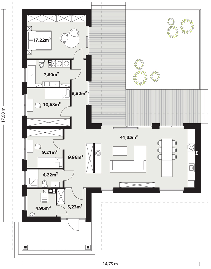 Stella 3 to parterowy dom jednorodzinny w stylu tradycyjnym o nowoczesnym układzie funkcjonalnym.